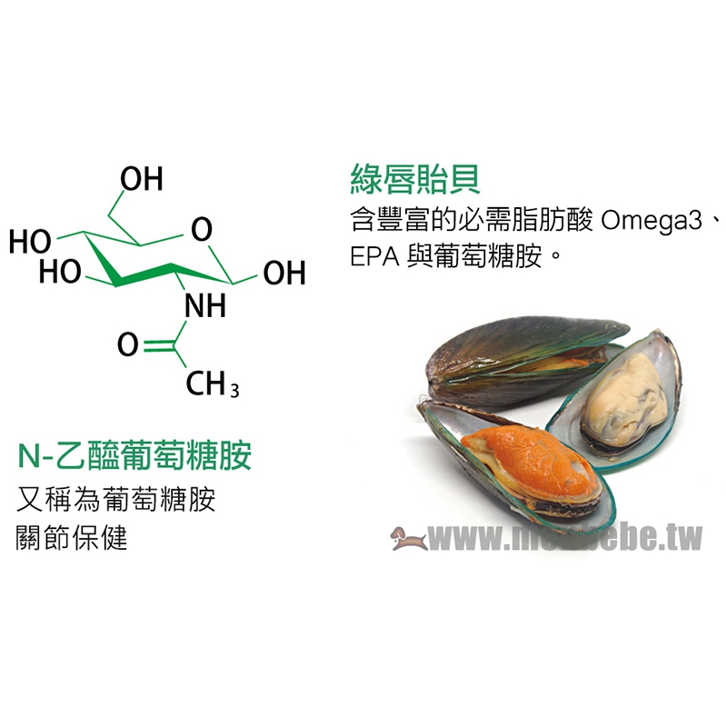 🐶綠唇貽貝含獨特的Omega 3 ETA,搭配N-乙醯葡萄糖胺,雙管齊下支持愛跑跳的